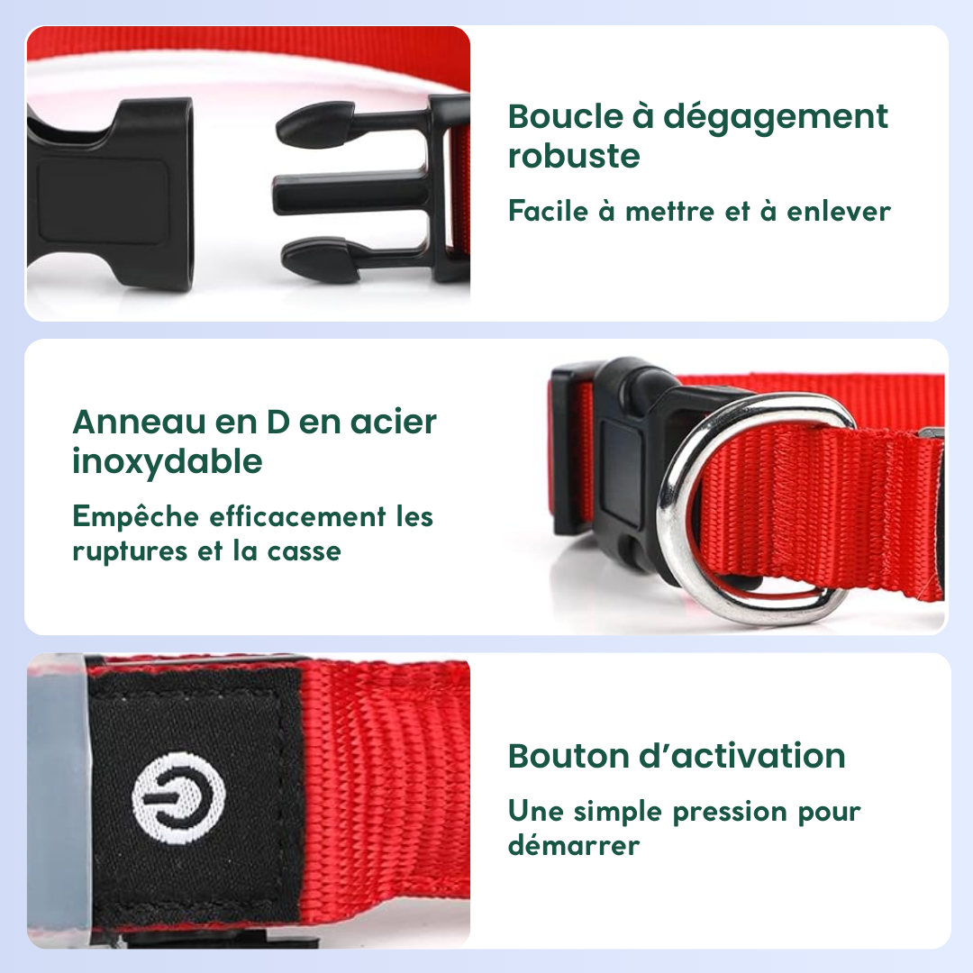Ce produit est un accessoire de visibilité et ne remplace pas la vigilance du propriétaire lors des promenades.